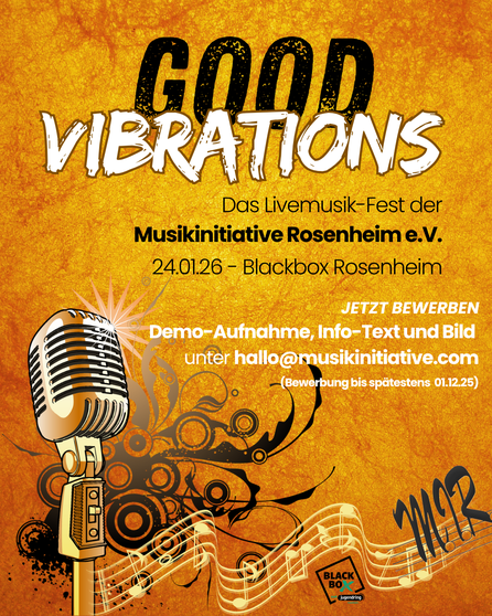 Am 26.11.2022 hat die Musikinitiative Rosenheim in Kooperation mit dem Kulturreferat des Landkreises Rosenheim im Lokschuppen ein Musikfestival veranstaltet. Musiker von vier Bands konnten sich und ihre Musik bei Good Vibrations präsentieren. Das Genrespektrum reichte von Contemporary Country Music über Indie, Pop bis Bavarian Folkrock. Mit jeweils 40-minütigen Auftritten haben die Bands das Publikum begeistert.